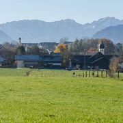 Ein Gegenanstieg später können wir abermals das herrliche Panorama in Richtung Alpen genießen. Nachdem wir die Loisach überquert haben, folgen wir dem Weg in Richtung Süden und gelangen zum Flugplatz Pömetsried. Wenige Minuten wandern wir noch weiter in Richtung Alpenpanorama und gelangen etwas später in die nächste größere Ortschaft. Hier ist zu beachten, dass das kurze Stück vom Flugplatz weiter bis nach Ohlstadt durch ein Moos verläuft. Bei sehr starken Regenfällen kann es vorkommen, dass der Weg etwas beschwerlicher zu passieren ist.